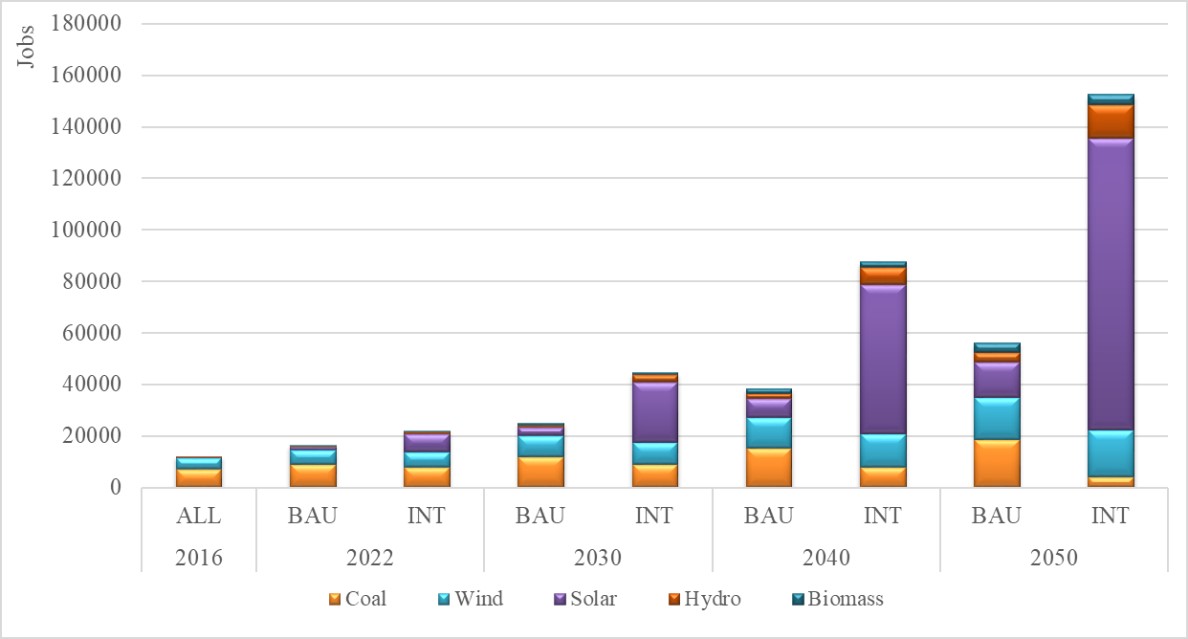 图2 2016-2050年常规情景和综合情景下的就业容量