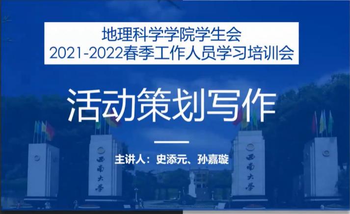 本次培训会就党的青年运动史学习、新媒体运营培训——推文排版、新媒体运营培训——取景拍照、策划案编写等四个专题对团委学生会全体工作人员进行培训。会议由best365英国体育在线团委学生会执行主席薛思懿主持。