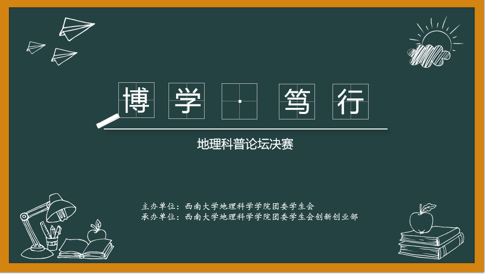 本次“博学·笃行”地理科普论坛大赛自3月26日开赛以来,吸引了全学院35支队伍报名参赛,为全学院营造了浓厚的科普氛围。本次科普大赛的顺利举办,不仅提升了地科学子的专业素养、语言表达、逻辑思维等综合能力,而且对促进地理学科的科普与创新发展起了十分积极的作用。