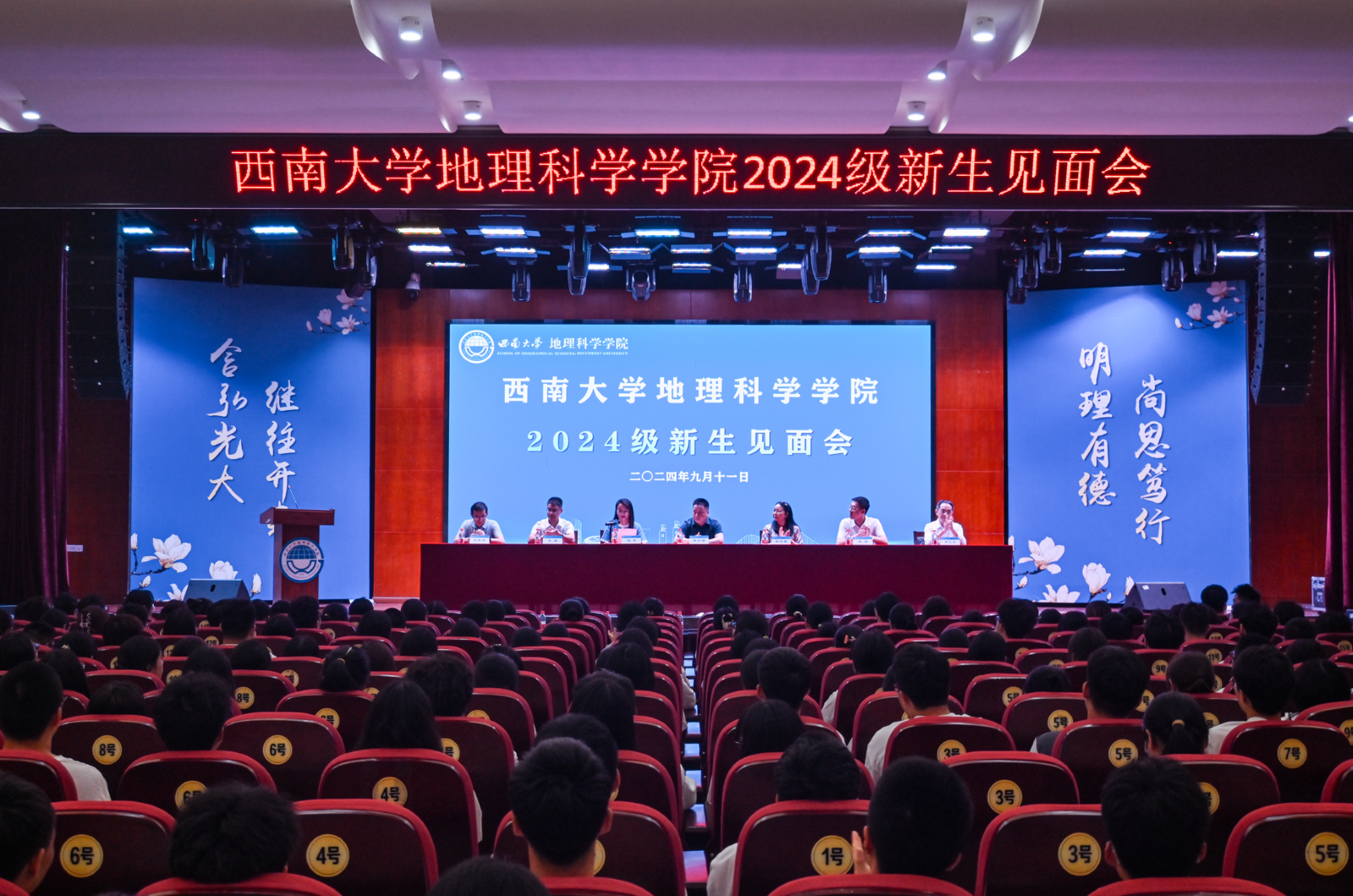 9月11日下午,西南大学best365英国体育在线2024级新生见面会在南区活动中心107报告厅举行。本次新生见面会的主题为“书香地理 悦读青春”,鼓励新生广泛阅读,用阅读点亮大学时光。学院党政领导班子、各专业系主任、全体辅导员、新生班主任、学生班导师以及2024级的全体同学参加。见面会由学院党委副书记胡乐主持。