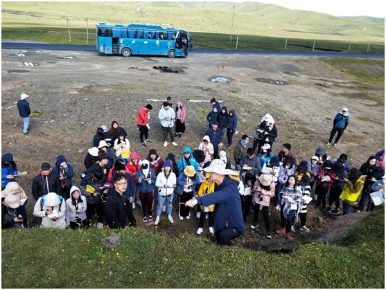 7月17-23日,联合实习队伍穿越中国东部季风区、青藏高寒区和西北干旱区三大自然地理区,途径甘肃、四川、青海及内蒙古等四省区,全程3500余公里。同学们在带队老师的指导下,对比分析了黄土高原南部、西秦岭山区、青藏高原东北部和西北干旱荒漠区的特征、分布和区域差异;探索了麦积山丹霞地貌的特征和发育机理;考察了黄龙钙华沉积类型、特征和分布,分析钙华成因机理和演化历程;探秘了青海民和县黄河岸边史前喇家村落毁灭的自然灾害证据和原因;登上海拔4500米的祁连山岗什卡现代冰川,观察冰斗、刃脊、角峰、侧碛堤和终碛垄等冰川地貌,并了解冰期划分的依据和原理;现场讨论了张掖红山湾红层地貌的成因、分类、命名和保护问题;思考了阿拉善沙漠高大沙山与湖泊的成因;测量了沙丘形态要素,探讨沙丘间距与沙丘高度之间的定量关系。