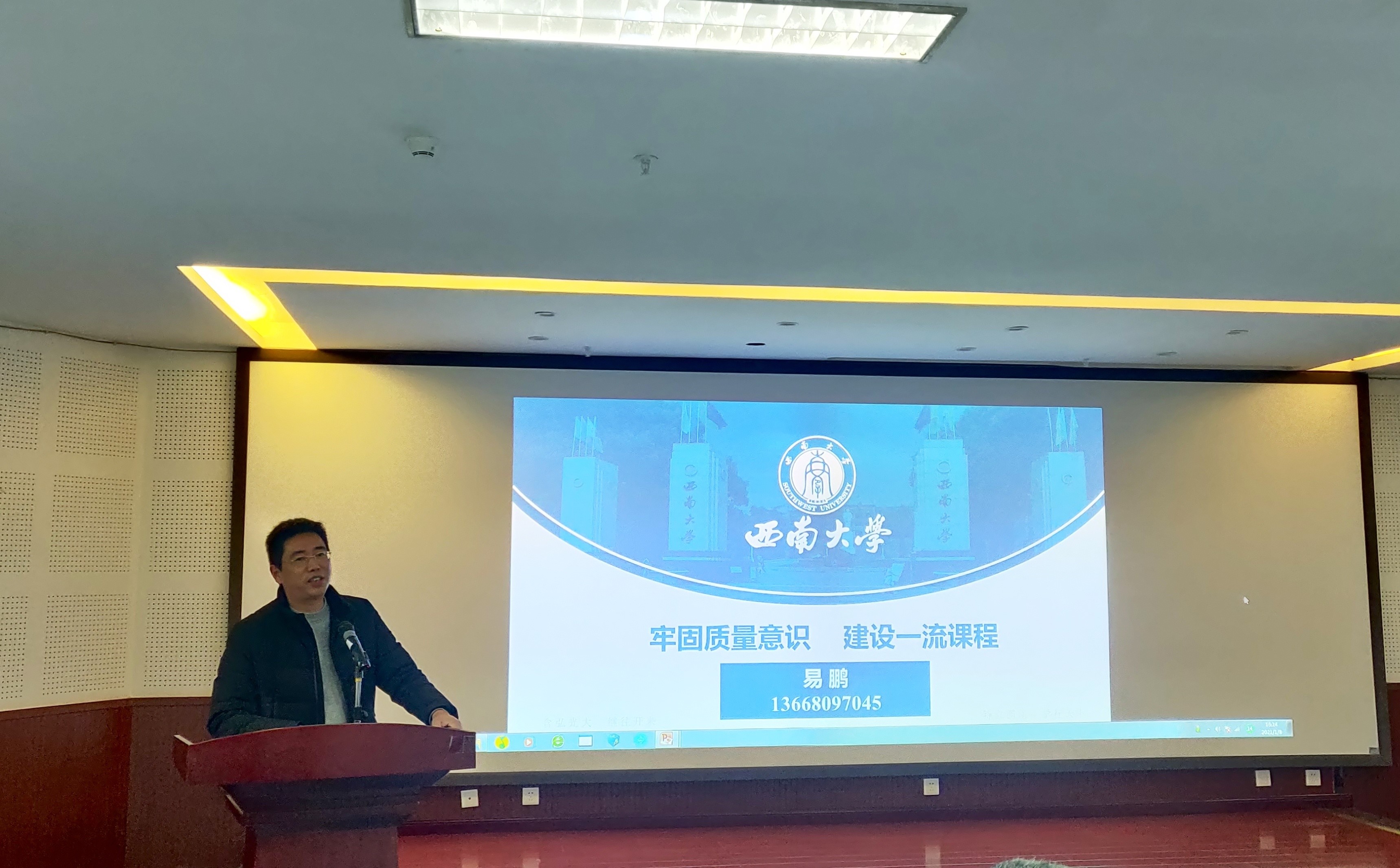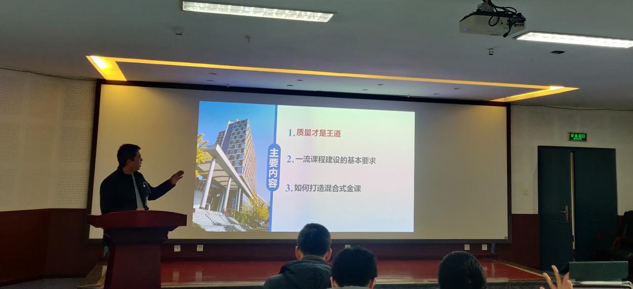 为推进学院本科教育教学改革,提高教师教学能力水平,为扎实推进学院老师的教学能力,落实立德树人的根本任务, 1月8日下午,学院在301学术报告厅召开深化本科教育教学改革报告会,邀请教务处易鹏副处长作“牢固质量意识,建设一流课程” 专题报告,报告会由学院领导主持。