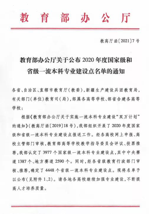 近日,教育部发布《教育部办公厅关于公布2020年国家级和省级一流本科专业建设点名单的通知》(教高厅函[2021]7号),西南大学地理科学专业入选国家级一流本科专业建设点,实现了学院国家级一流本科专业零的突破。