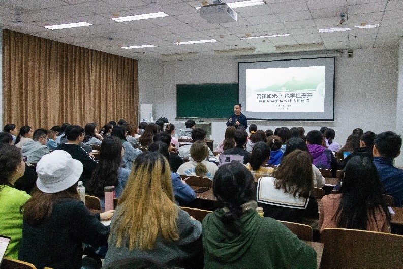 为让地理科学(师范)专业的学生深刻了解地理学科教育改革,培养其教学素养,丰富优质课教学经验,提升地理教学技能,我院联合教师教育学院开展“中学优秀青年地理教师进课堂”系列讲座,深化协同创新育人效果。第一场讲座于2021年4月14日在26教511拉开序幕,西南大学附属中学的缪羽老师呈现了一堂干货满满的优质课教学分享会。缪羽老师以“苔花如米小,也学牡丹开”为主题侃侃而谈,妙趣横生地分享了自己的优质课打磨及教学育人经验。