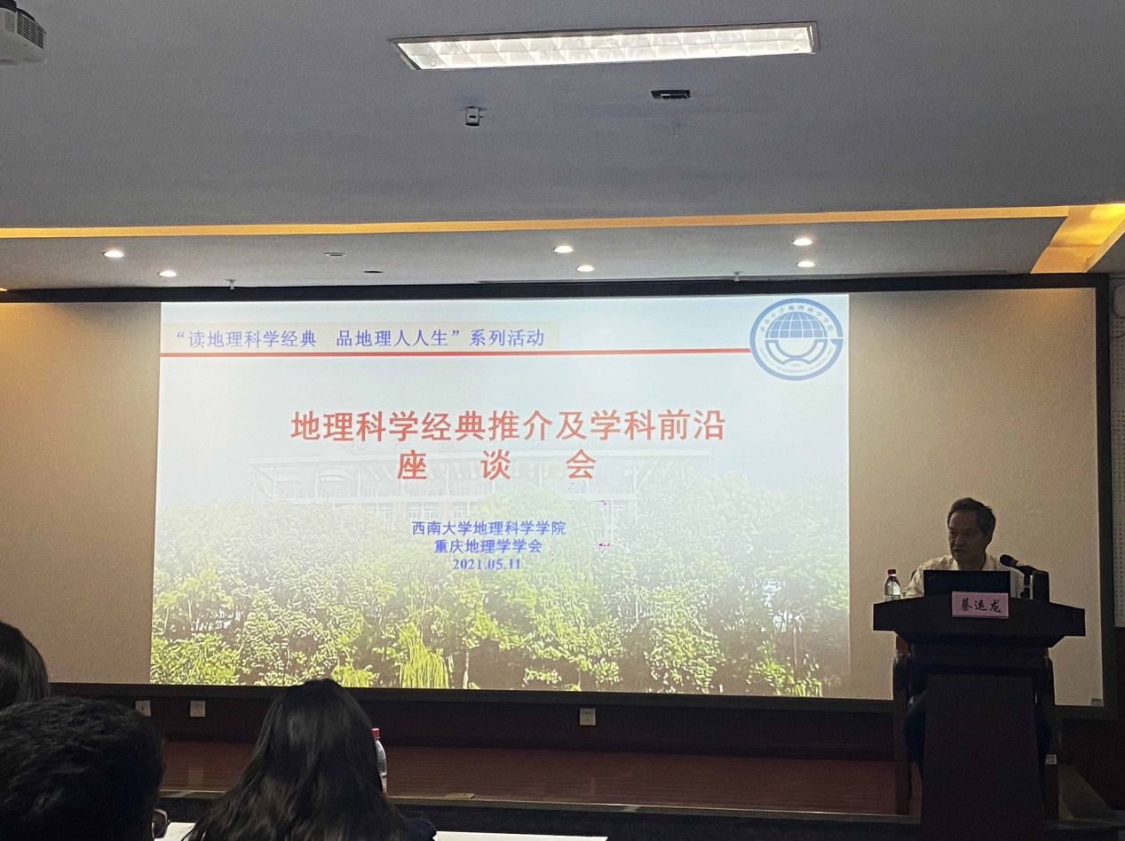 2021年5月11日下午3点,重庆地理学学会主办、西南大学best365英国体育在线协办的“读地理科学经典,品地理人人生”系列活动之“地理科学经典推介及学科前沿”座谈会在best365英国体育在线301教室举办。本次座谈会邀请了北京大学城市与环境学院与地理科学研究中心蔡运龙教授作为主讲嘉宾,best365英国体育在线党委书记喻尚其、副院长杨庆媛、副院长马明国以及杨晓霞、王成等多位学院教师和众多地科学子参加。