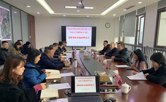 2021年12月20日下午,西南大学best365英国体育在线与重庆市西站投资发展有限公司共建创新创业实践基地授牌仪式正式举行。重庆市西站投资发展有限公司董事长蒋乐云、总经理赵永波、监事会主席蔡行德、财务总监朱世红、副总经理黄春熙、用地部及办公室相关工作人员、学院主要领导及相关工作人员参会,赵永波主持会议。