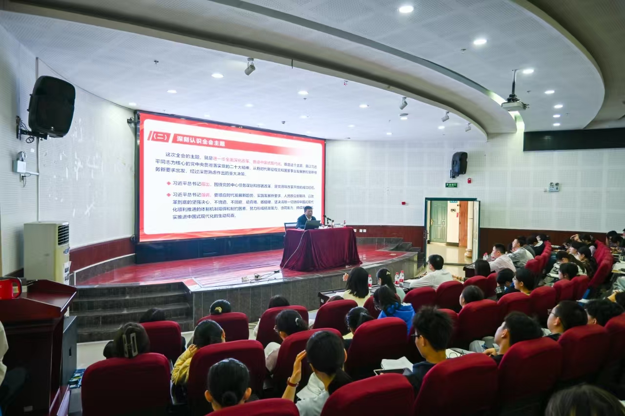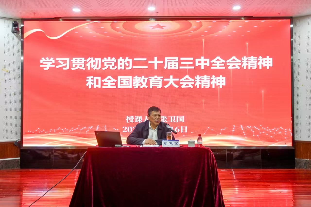 课程伊始,张卫国书记从二十届三中全会的视角出发,以“六个深刻认识”强调了深入学习和领会全会精神的重要性。他深入分析了当前社会的发展形势,并围绕“三驾马车”这一主题,与同学们探讨了消费、投资和贸易三者之间的关系。同时,张书记全面准确地阐述了《决定》中关于深化改革的精神,详细讲解了我国在经济、文化、政治等领域的系列改革策略。