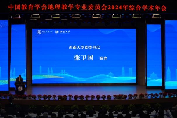 西南大学党委书记张卫国代表学校向一直关心西南大学及附属中学建设和发展的同仁表示衷心的感谢与欢迎。张卫国书记期盼各位专家学者能够通过年会分享真知灼见,碰撞思想火花,共同推动我国地理教育事业的发展,为教育强国建设贡献智慧和力量。