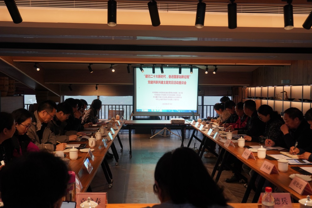 随后,党员们乘车来到金佛山北坡索道上站,受到金佛山景区党工委委员、管委会副主任殷娅琼、山水公司党委副书记、总经理王军波一行的热烈欢迎,双方在金佛山假日酒店的二楼会议室开展交流座谈,会议由地科院行政教工支部书记雷丽丹主持。首先,殷娅琼副主任向大家介绍了金佛山管委会的概况,近期管委会正协调配合西南大学,开展国家站基地建设以及科研观测、杜鹃花繁育的相关工作。同时,也对下一步共建工作计划进行了介绍。金佛山国家站与金佛山管委会开展的深度共建合作促进了金佛山国家站在南川区建设工作的顺利开展,金佛山管委会的大力支持在其中起了不可替代的作用。