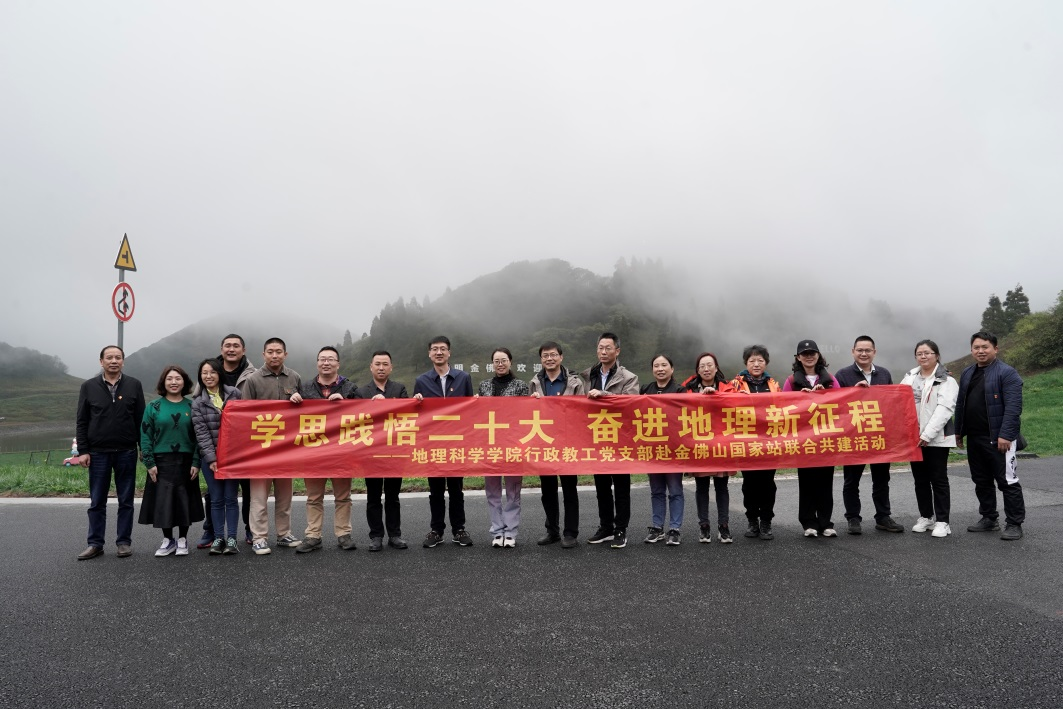 为深入学习宣传贯彻党的二十大精神,深化党建引领、赋能地理学发展、提升管理服务能效,探索加强组织联建、党员互动、活动互联、资源共享的有效途径,促进党建工作相互对接、相互融合、相互促进,增强党组织统筹发展的内在动力,实现在党支部结队共建活动中优势互补、共同提高。4月14日,best365英国体育在线党委行政教工支部联合中共重庆市南川区金佛山管理委员会支部委员会、中共山水都市旅游开发有限公司委员会、西南大学实验室设备处管理处党委第二党小组在金佛山开展了“学思践悟二十大,奋进地理新征程”联合主题党日活动。