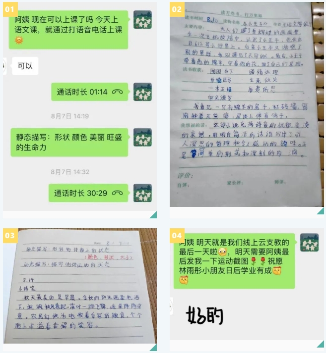 作为师范专业的学生,参与云支教活动既可以帮助小朋友学到知识,又可以锻炼自己的讲课与沟通能力。因此当这个志愿活动开始招募,我就马上报名参加。在活动中我对接了两名可爱的小朋友,开展了为期一个月的暑期支教活动。