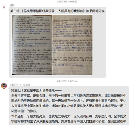 习近平总书记指出,学习理论最有效的办法是读原著、学原文、悟原理,强读强记,常学常新,往深里走、往实里走、往心里走,要把自己摆进去、把职责摆进去、把工作摆进去,做到学、思、用贯通,知、信、行统一。本次活动积极响应学院发起的阅读倡议,鼓励同学们从“地理学十大经典读本”或马克思主义哲学经典原著选择一本进行阅读学习。支部同志选择了18本原著进行阅读并在支部群里分享读书笔记,共分享读书随笔18次,累计9846字;完成读书笔记21篇,共计25149字。