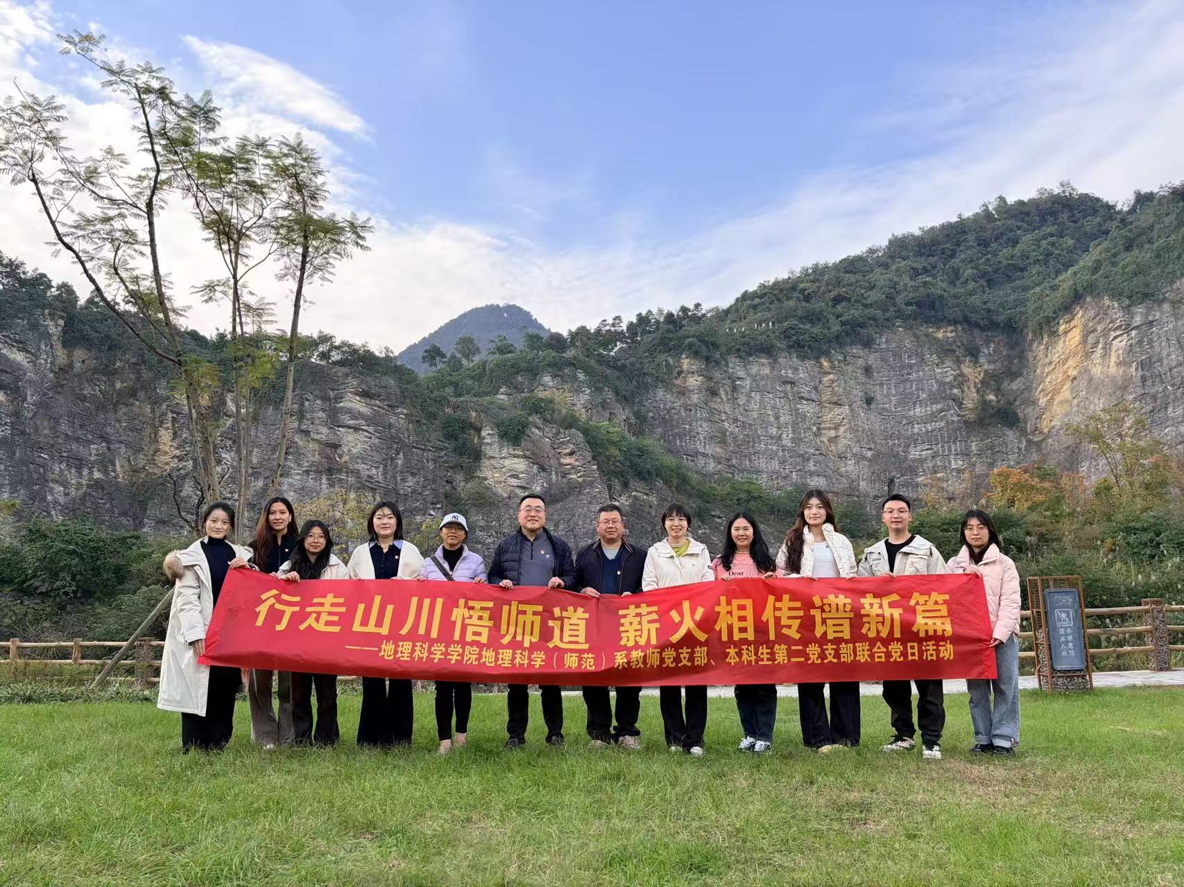 为加强师生交流,促进教学相长,培养师范生实践教学能力,近日,学院地理科学(师范)系教师党支部与本科生第二党支部联合开展主题党日活动,共赴铜锣山矿山公园进行实地考察开展生态文明实践活动。