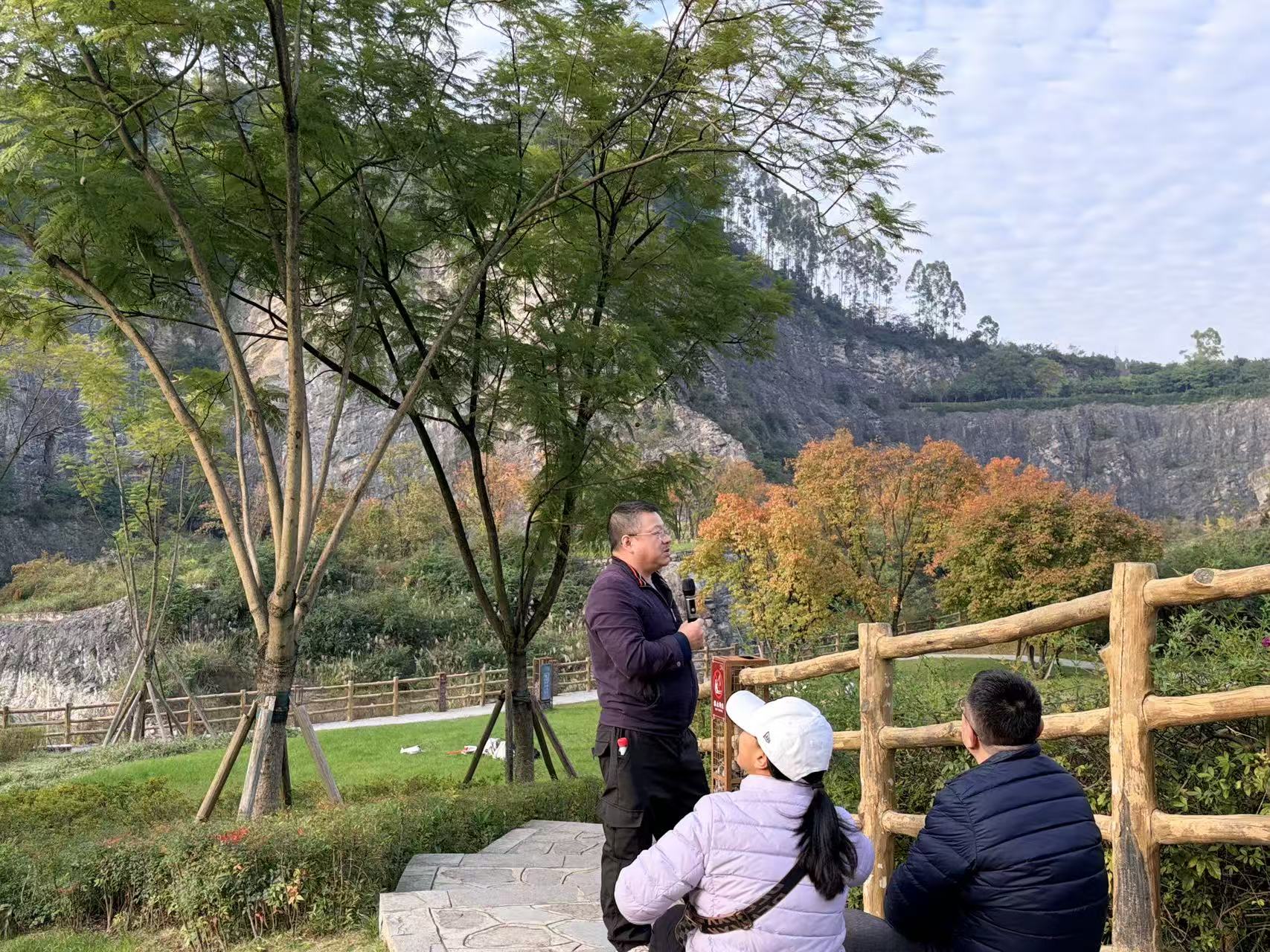 此次参观聚焦矿山地质环境治理、废弃矿区再利用及山地城市生态修复等主题。通过实地观察矿山遗迹、矿坑治理区和生态修复示范区,全面了解了矿区从传统矿山开采区向集“生态展示、科普教育与矿山文化保护”为一体的城市矿山公园转型的全过程。