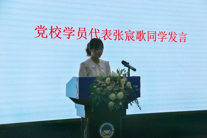 接下来,党校学员代表张宸歌发言,表达了自己对中国共产党的认识、入党动机和坚定决心并代表全体学员向党组织表态:学员们必将坚定理想信念,共担时代责任,同谋民族复兴;刻苦学习,提升能力,掌握本领;身体力行,积极投身社会实践,展现新时代大学生的精神风貌,努力为人民服务。