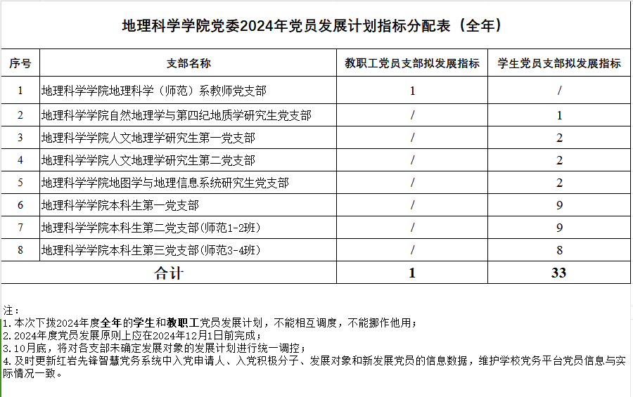 best365英国体育在线党委2024年党员发展计划指标分配表(全年)