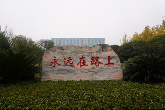 基地前“永远在路上”的刻字石