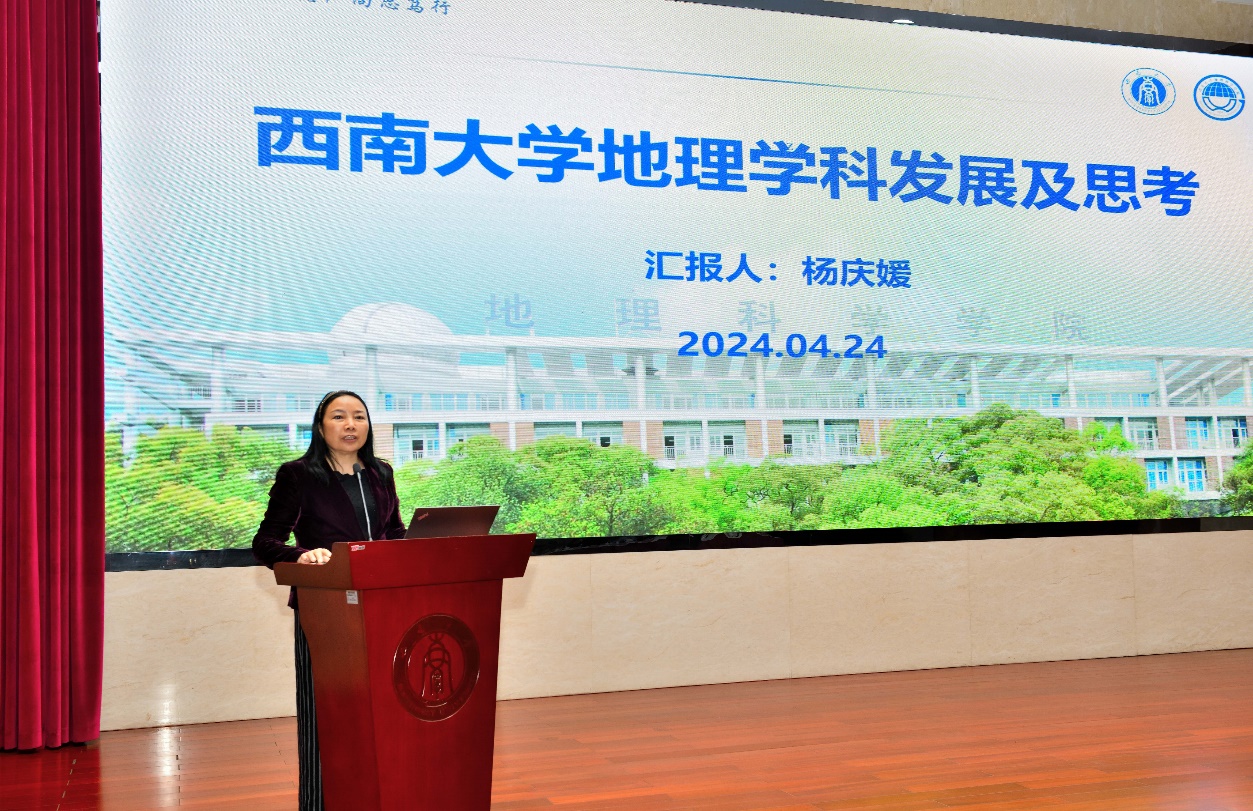 best365英国体育在线杨庆媛副院长做了《西南大学地理学科发展及思考》的报告,介绍了西南大学best365英国体育在线的基本概况,以及在人才培养、科学研究、社会服务等方面取得的进展,总结了当前面临的问题与不足,提出了学院在发展规划与路径等方面的思考。